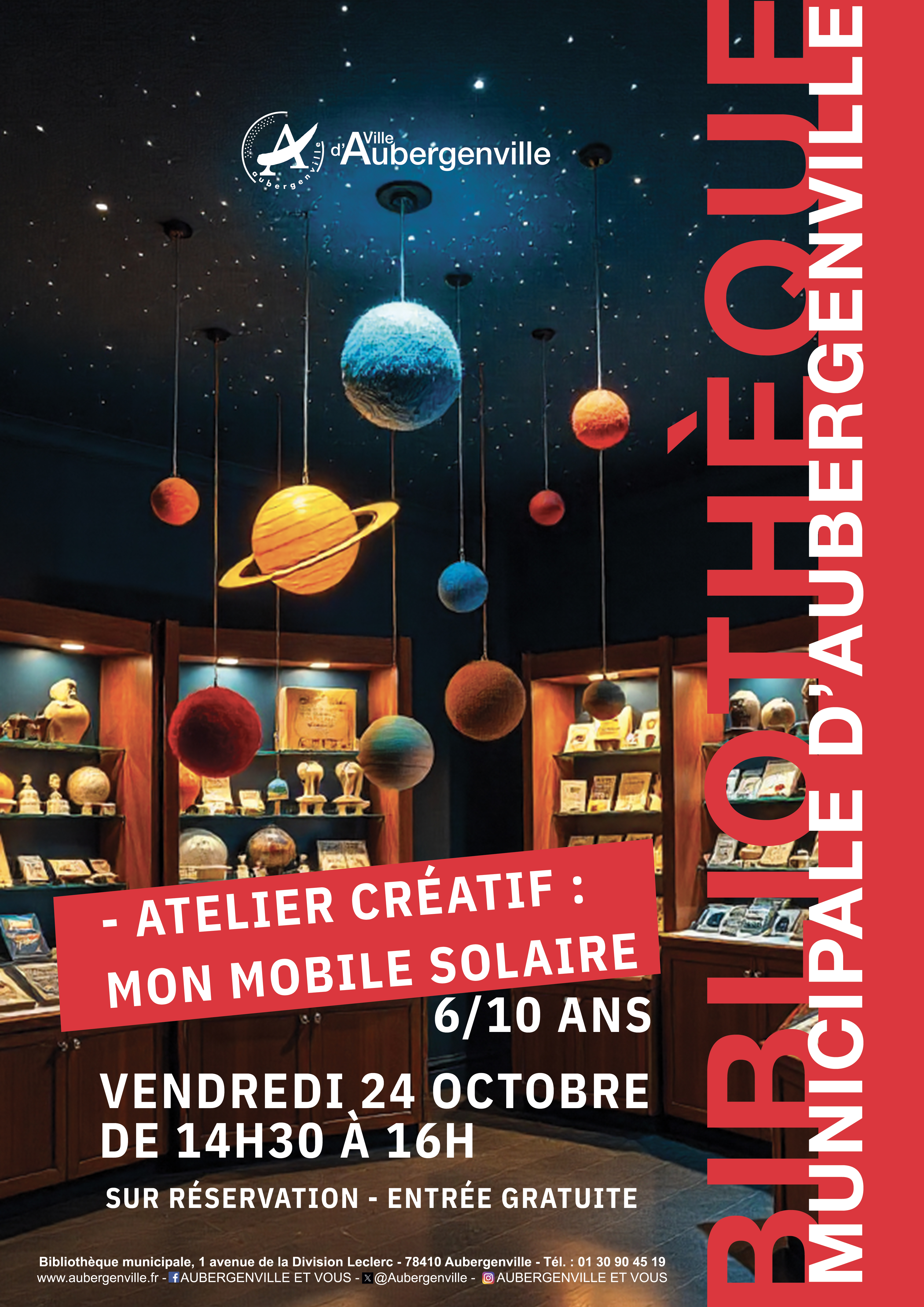 Jeunes créateurs et passionnés d'astronomie, cet atelier est fait pour vous ! La Bibliothèque Municipale d'Aubergenville vous invite à participer à un atelier créatif amusant et éducatif : "Mon Mobile Solaire".
