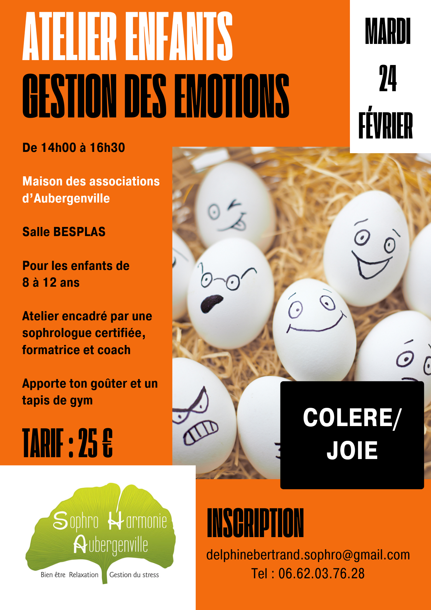 L'association Sophro Harmonie Aubergenville vous propose un atelier ludique et bienveillant dédié à la gestion des émotions pour aider les enfants à mieux se comprendre et à s'épanouir sereinement, le mardi 24 février, de 14h à 16h30.