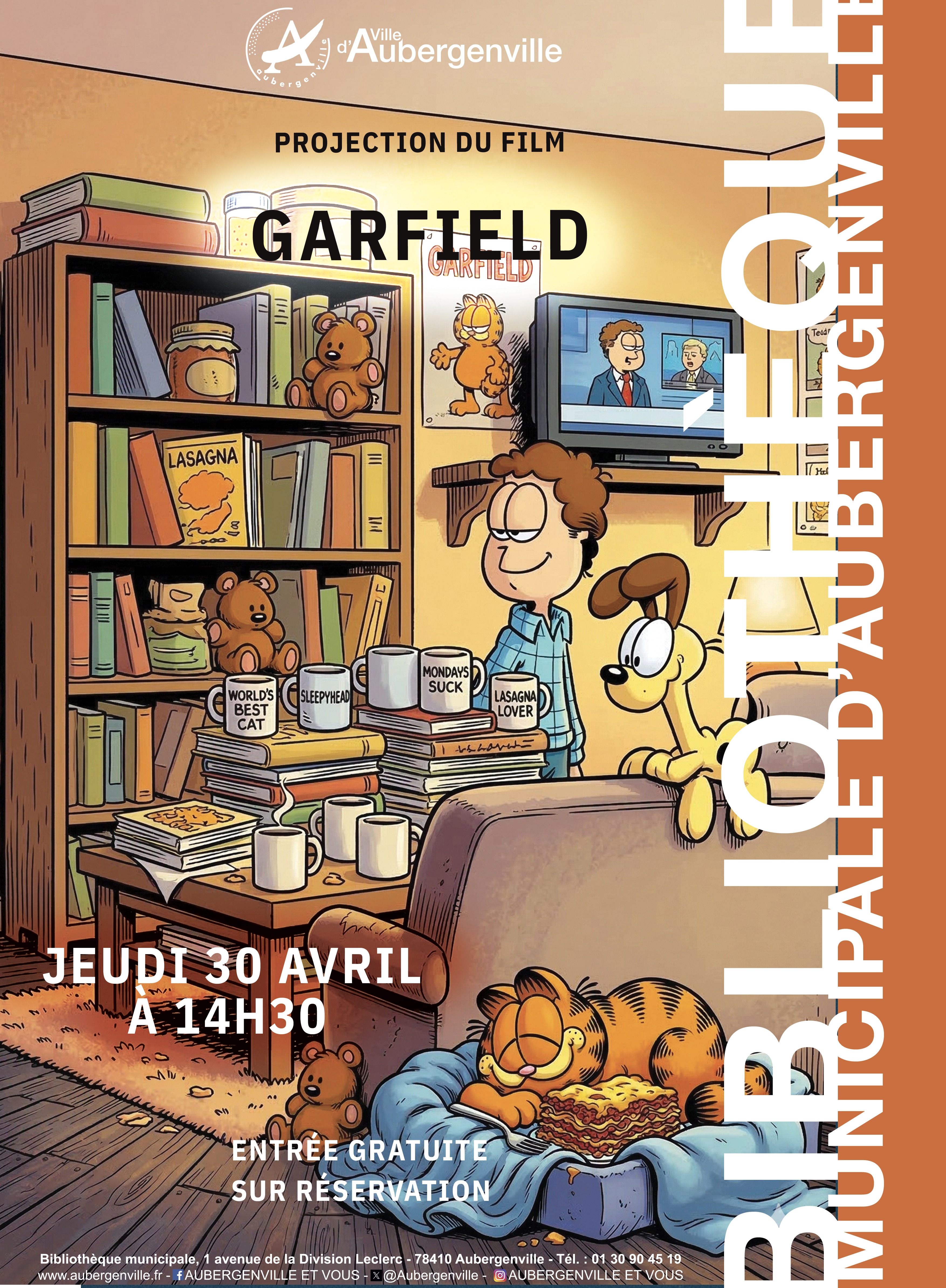 Il est roux, il adore les lasagnes et il déteste les lundis... Vous l'avez reconnu ? Garfield s'invite à la Bibliothèque Municipale d'Aubergenville pour une après-midi pleine d'humour et de rebondissements !