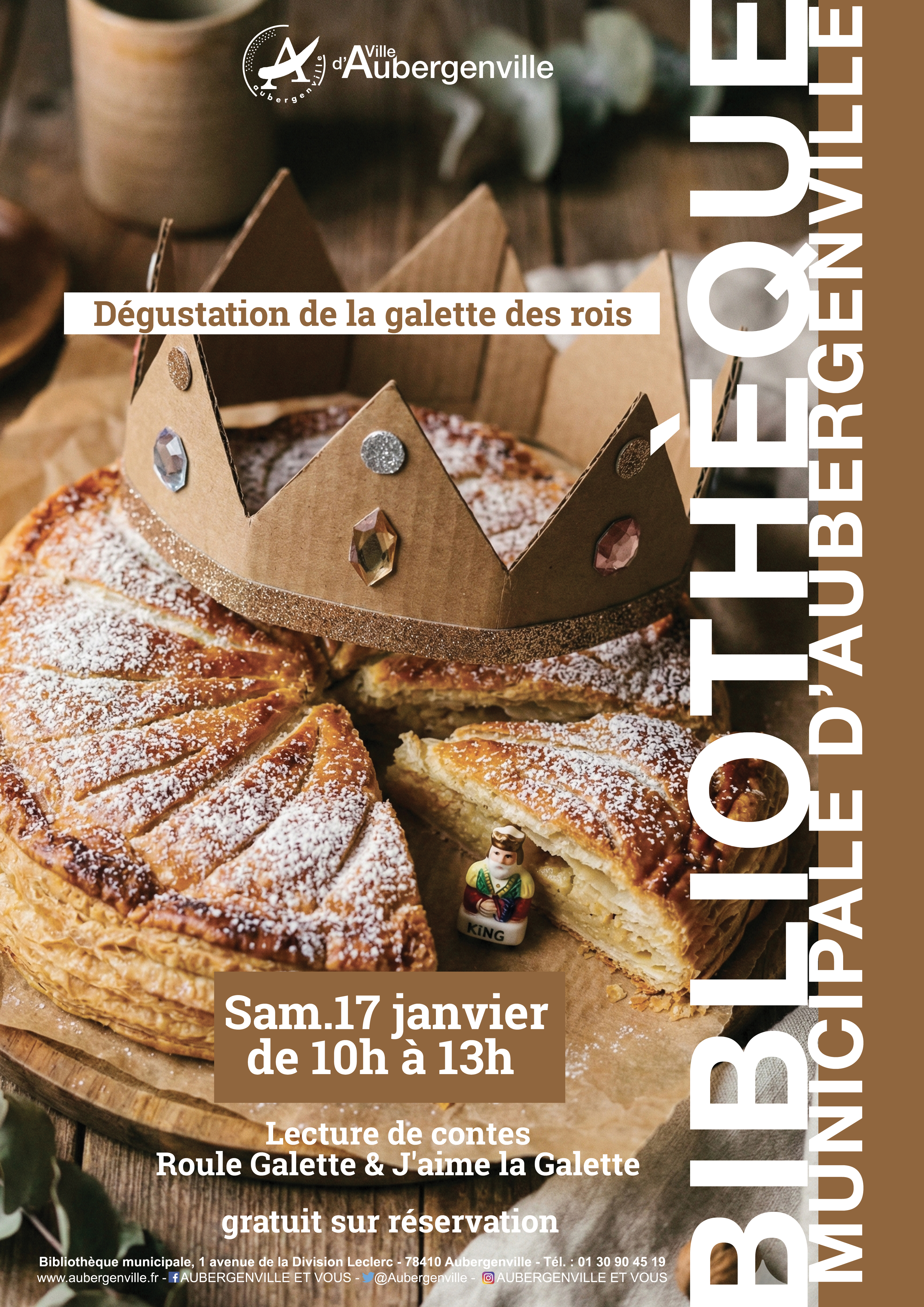 La Bibliothèque Municipale d’Aubergenville vous invite à un moment chaleureux et gourmand autour de la traditionnelle galette des rois. Petits et grands sont conviés à partager une dégustation conviviale suivie d’un temps de lecture dédié aux plus jeunes.
