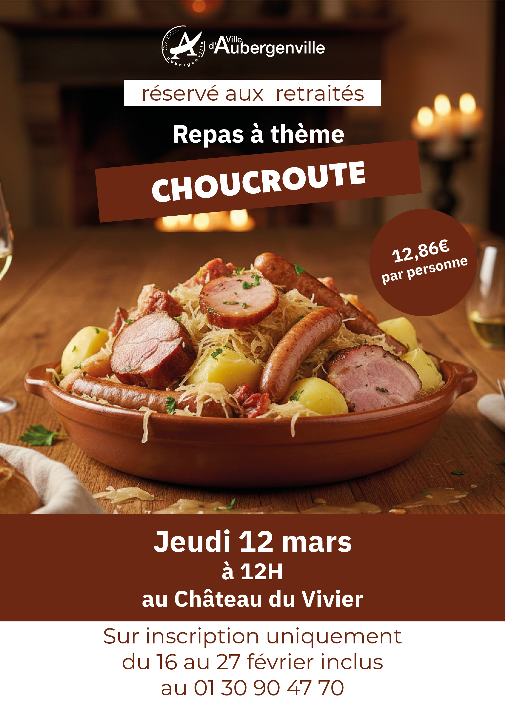 Venez savourer une choucroute traditionnelle lors d'un déjeuner placé sous le signe de la convivialité, le jeudi 12 mars, au Parc du Château du Vivier.